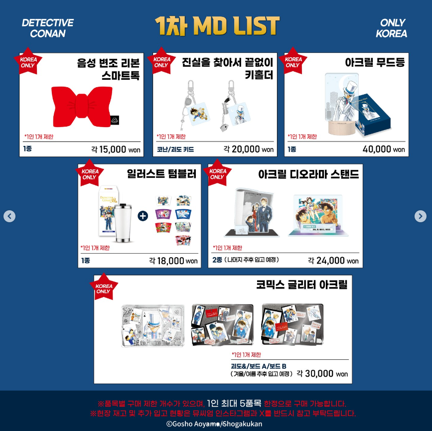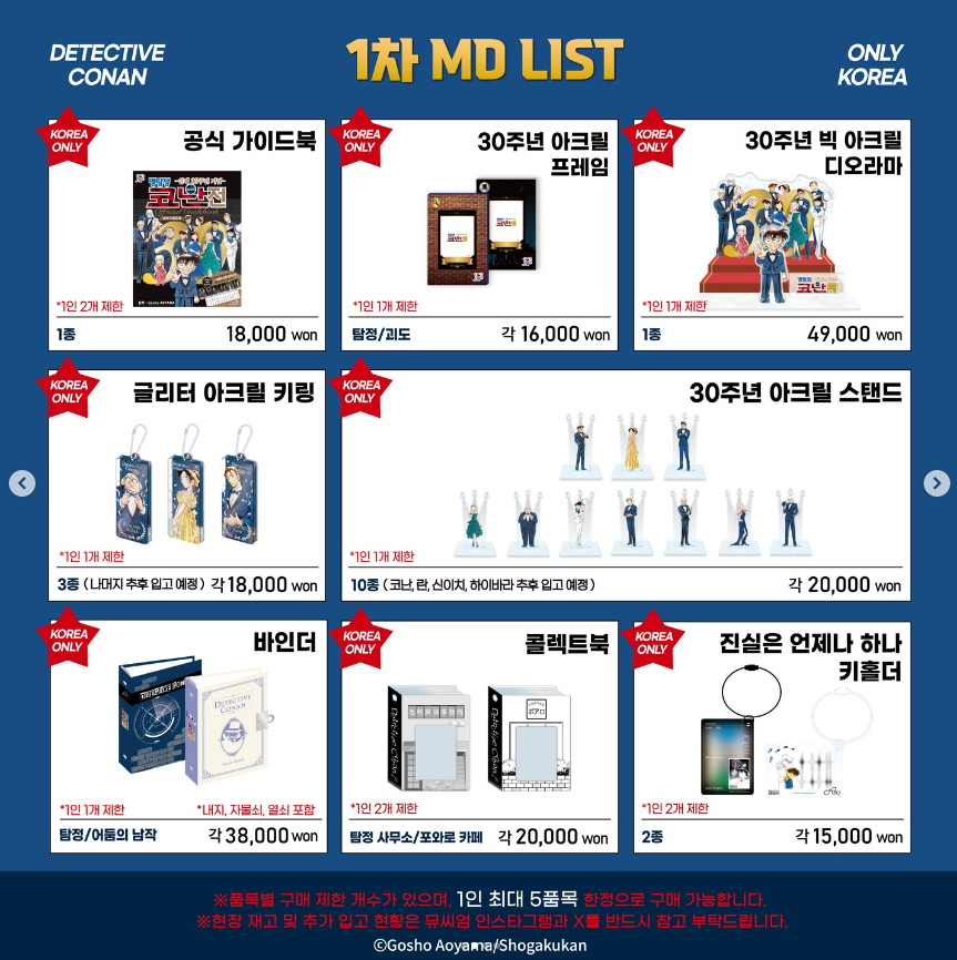 공식 가이드북, 30주년 아크릴 프레임, 30주년 빅 아크릴 디오라마, 글리터 아크릴 키링, 30주년 아크릴 스탠드, 바인더, 콜렉트북, 진실은 언제나 하나 키홀더, 음성 변조 리본 스마트톡, 진실을 찾아서 끝없이 키홀더, 아크릴 무드등, 일러스트 텀블러, 아크릴 디오라마 스탠드, 코믹스 글리터 아크릴