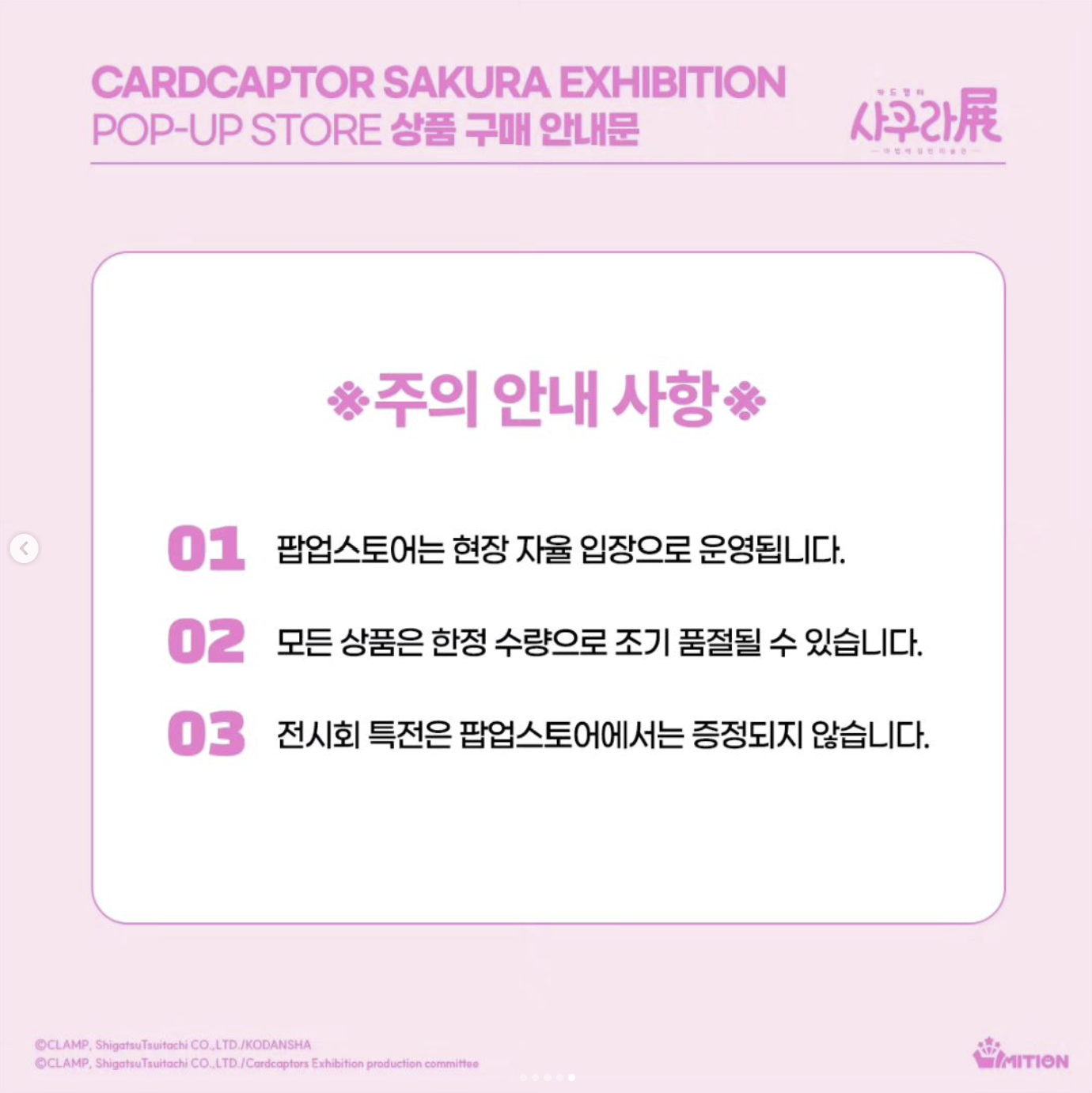 올해 초에 진행되었던 카드캡터사쿠라전이 팝업스토어로 돌아왔습니다! 홍대 AK PLAZA 4층 LIMITION에서 진행된다고 하는데요. 카드캡터사쿠라전에서 아쉽게도 품절되어 구매하지 못했던 MD들을 구매할 수 있습니다. 따로 입장 대기 없이 현장 자율 입장으로 운영된다고 하니 관심 있으신 분들은 홍대 AK PLAZA에 들려보시는 것은 어떨까요?