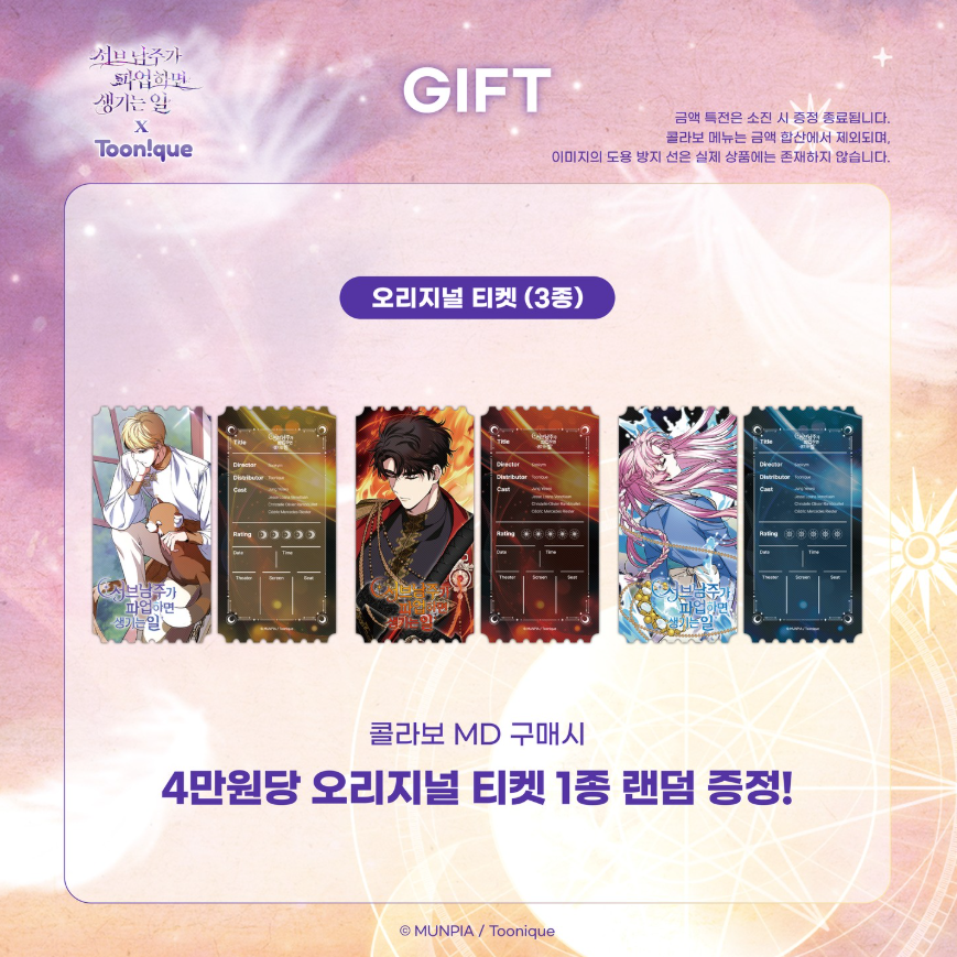 - 콜라보 MD 구매 시 4만원당 오리지널 티켓 1종 랜덤 증정